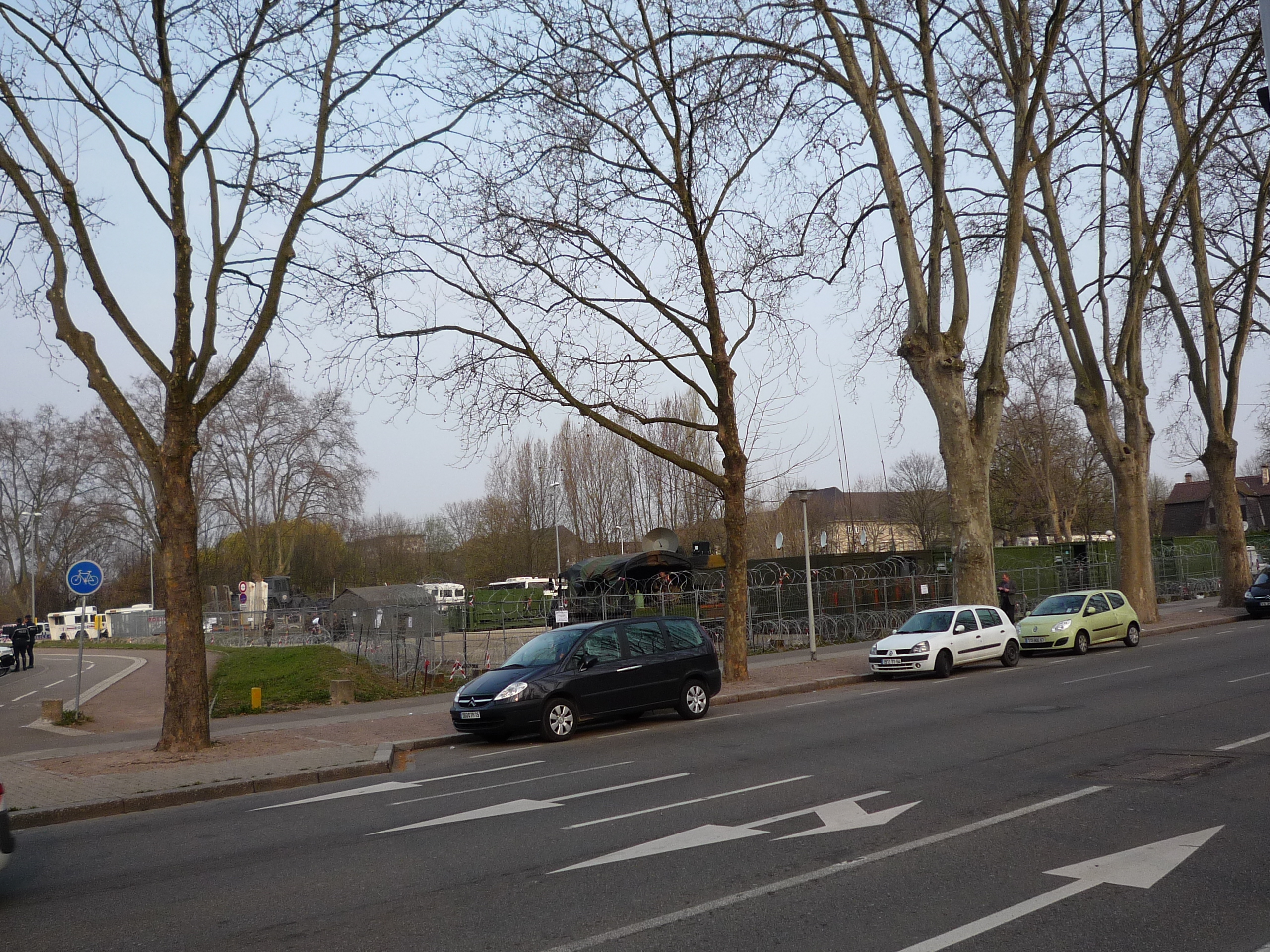 Ce parking s'est bien transformé en camp militaire.